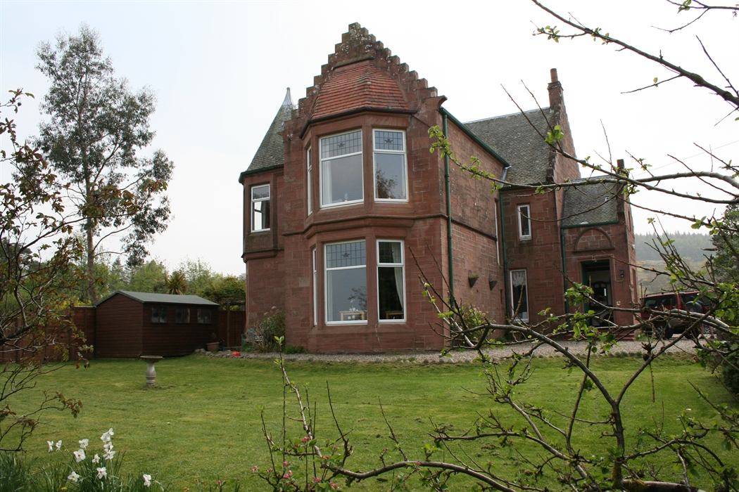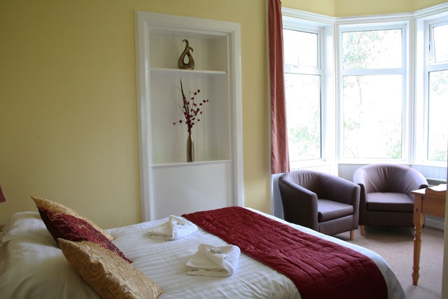 Carrick Lodge is a majestic, listed, sandstone building situated in an elevated position overlooking Goatfell, Brodick Bay and Brodick Castle. Only 500 yards from Brodick Pier it is easily accessible to drivers and non-drivers alike.