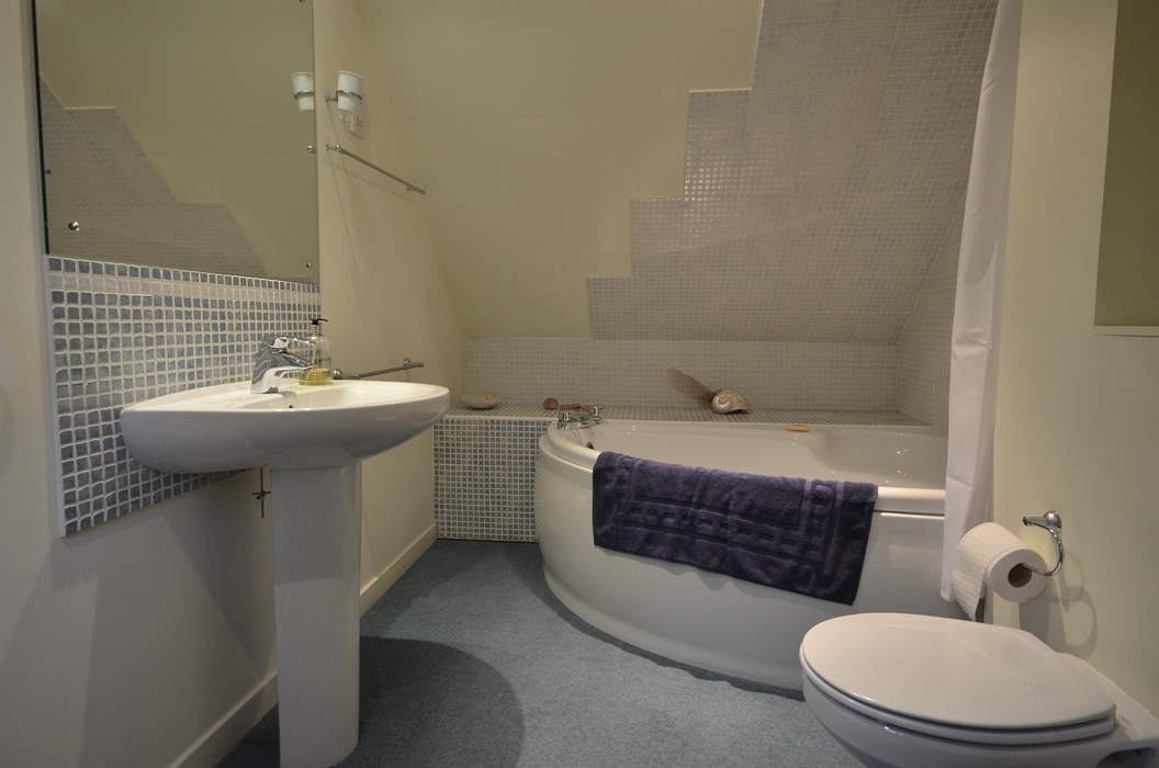 Upstairs are the master bedroom that has wonderful sea views and an en suite bathroom with corner bath, a further double bedroom, a twin bedroom and a shower room.