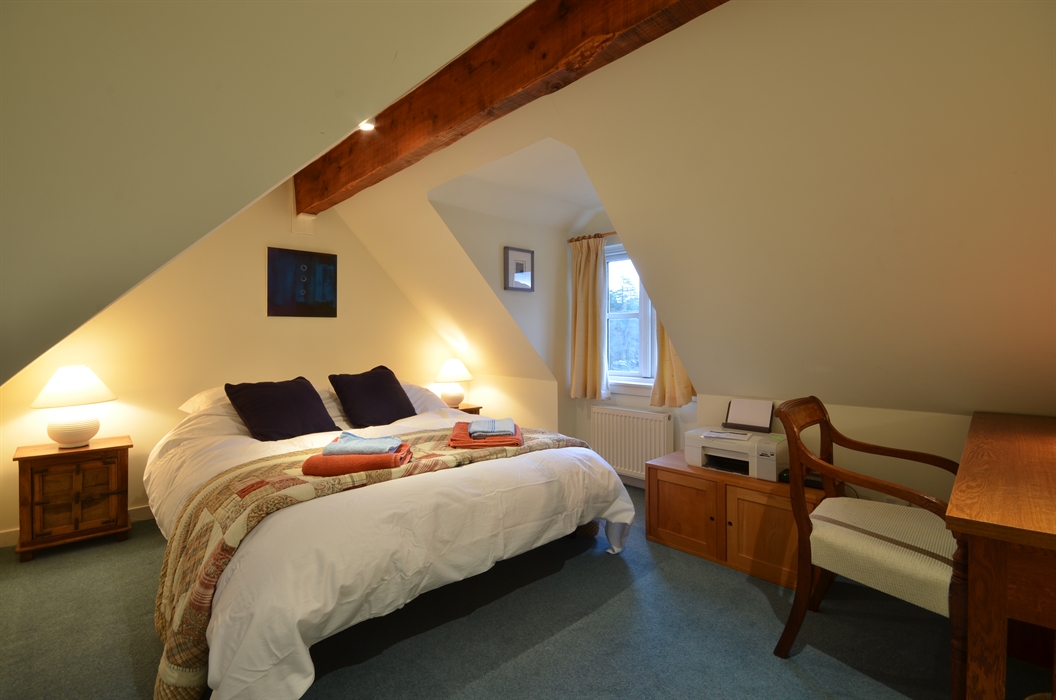 The kitchen area has everything needed easily to hand and meals can be enjoyed at the large farmhouse dining table. French doors by the dining area open up so you can enjoy the garden while you eat and there is seating on the patio area by the doors where there is a BBQ for al fresco dining. A neat utility room houses the laundry facilities and has useful drying space for coats, etc and there is a bathroom and handy double bedroom downstairs so those with mobility issues don’t have to tackle the stairs.