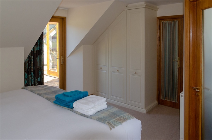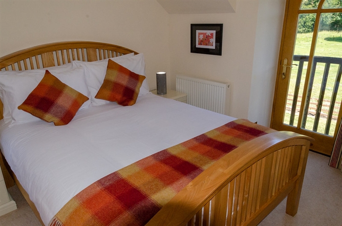 A feature up and around oak staircase leads upstairs and onto a large mezzanine gallery. From here, weather permitting, access through double French doors is gained onto a spacious exterior decked area with views over much of the farm. Direct access onto the deck can also be gained from bedroom 2.