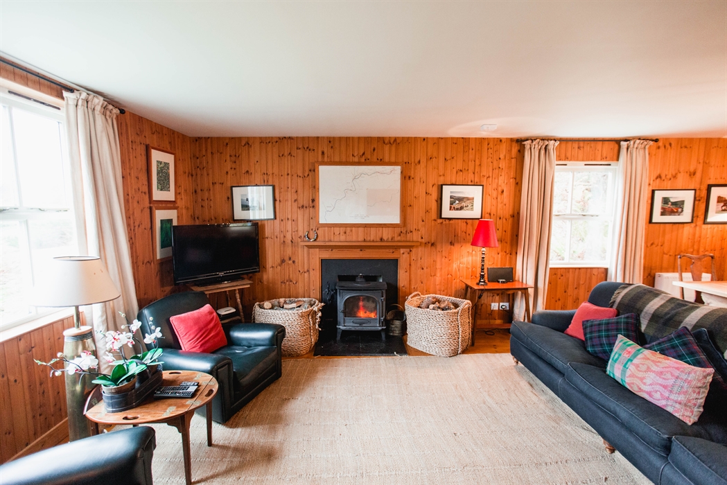 The spacious sitting room and dining area is wood-panelled throughout and the log-burning stove and traditional furnishings lend the room a cosy ambiance. A well equipped kitchen, three exceptionally spacious bedrooms (two twins and one double), and a bathroom and shower room ensure comfortable accommodation for up to six guests. Modern casement windows and full central heating help to keep the Highland chill at bay.