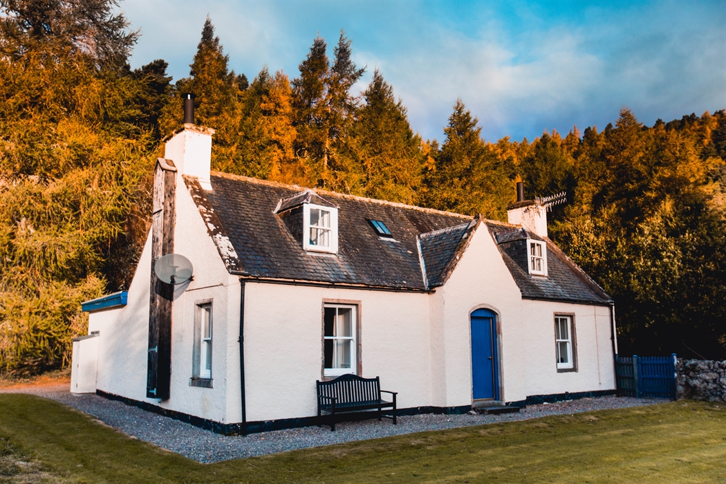 As the name suggests, this delightful whitewashed stone cottage formerly housed the Estate gardener and lies within the wooded Drynachan Valley, enjoying spectacular views across the River Findhorn.