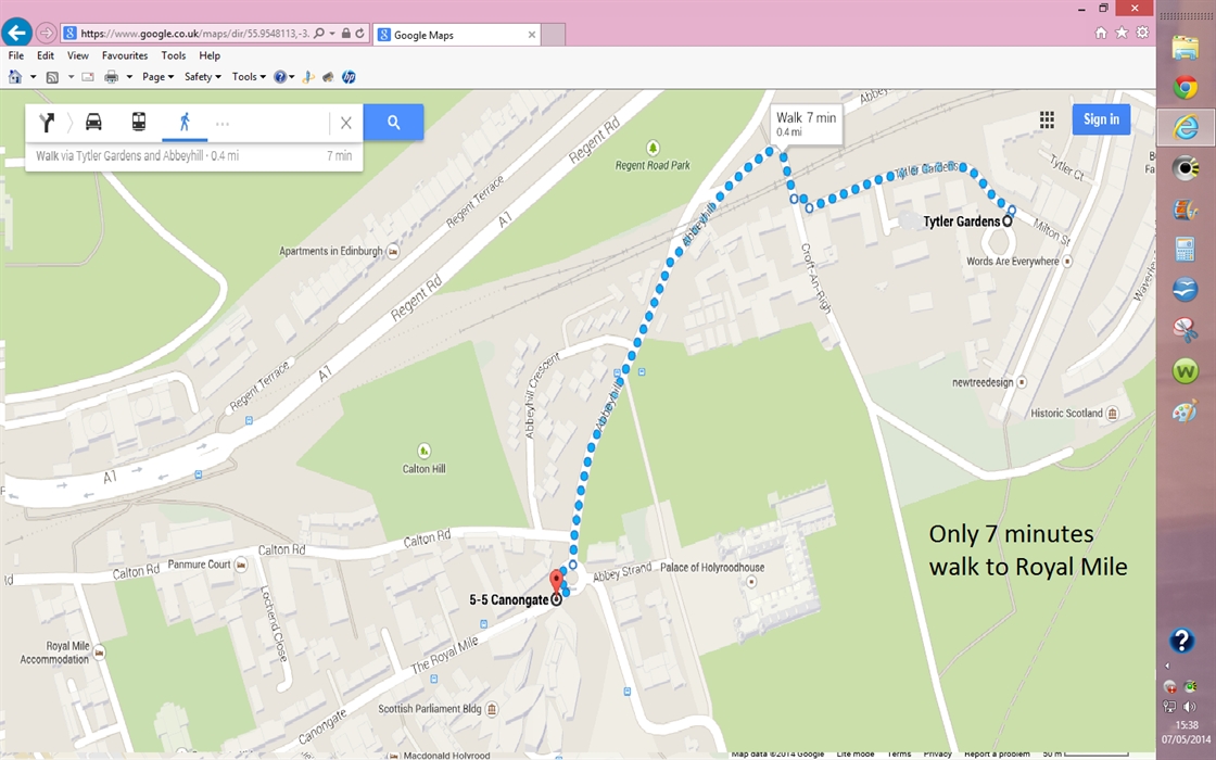 Fancy having royalty as neighbours? This fantastically located central apartment is almost next door to The Palace of Holyroodhouse, the Queen's residence whilst in Scotland. Across the road from the Palace is the Scottish Parliament Building and Dynamic Earth. From there, a short stroll up the Canongate leads to the High Street where at the top you will find the famous Edinburgh castle (the route from the Palace to the Castle is known as the Royal Mile) . The accommodation is also within walking distance of most of the fringe and festival venues and the shopping area of Princes Street.