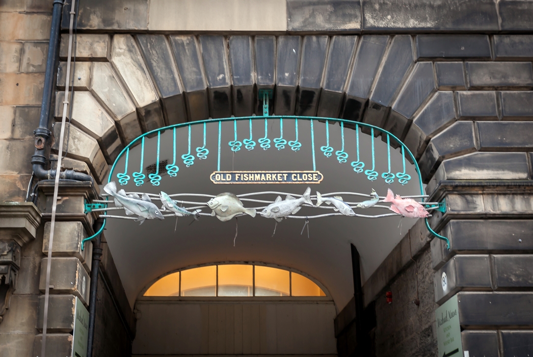 Old Fishmarket Close in Edinburgh was once considered a 'a steep, narrow stinking ravine' containing a lively fish and poultry market. It runs south from the Royal Mile next to St Giles Cathedral to Cowgate.