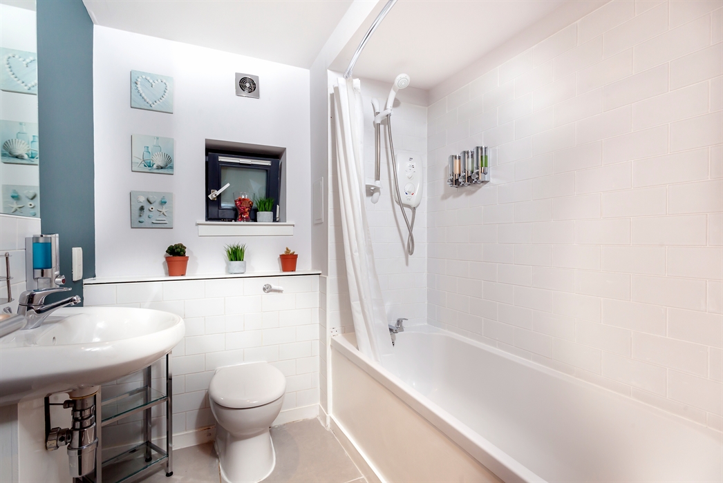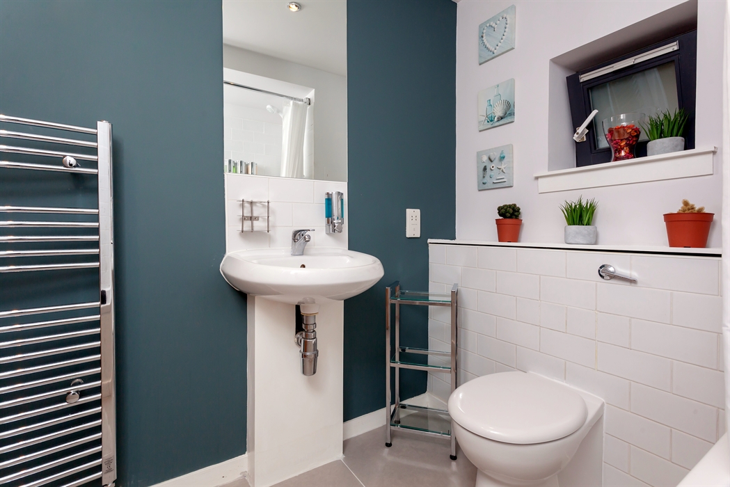 Accessed from the hallway is the shower room, where you'll find some Scottish toiletries and a shower, WC and hand basin.
