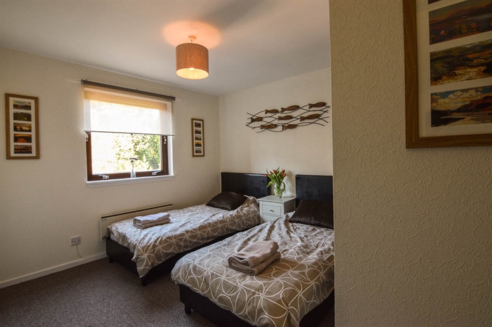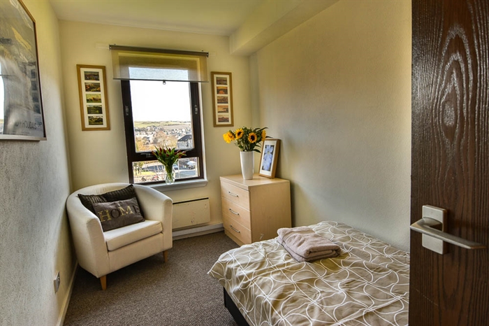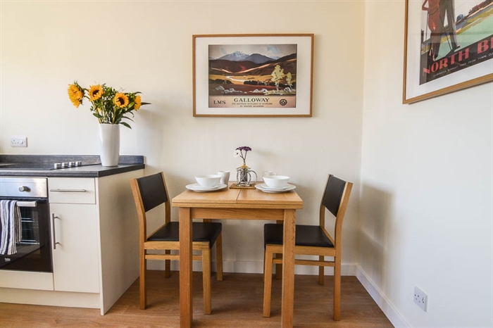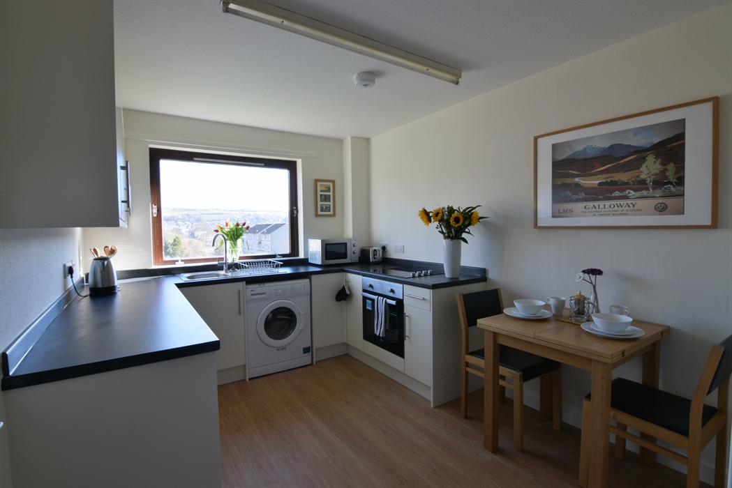 Sunny, South Facing, Newly re-furbished first floor Apartment with panoramic views across Hawick to the hills beyond. Quiet location, close to ameneties with private parking.