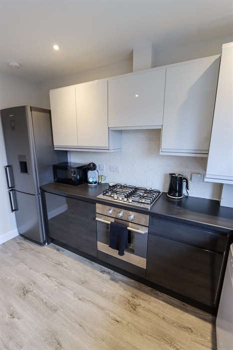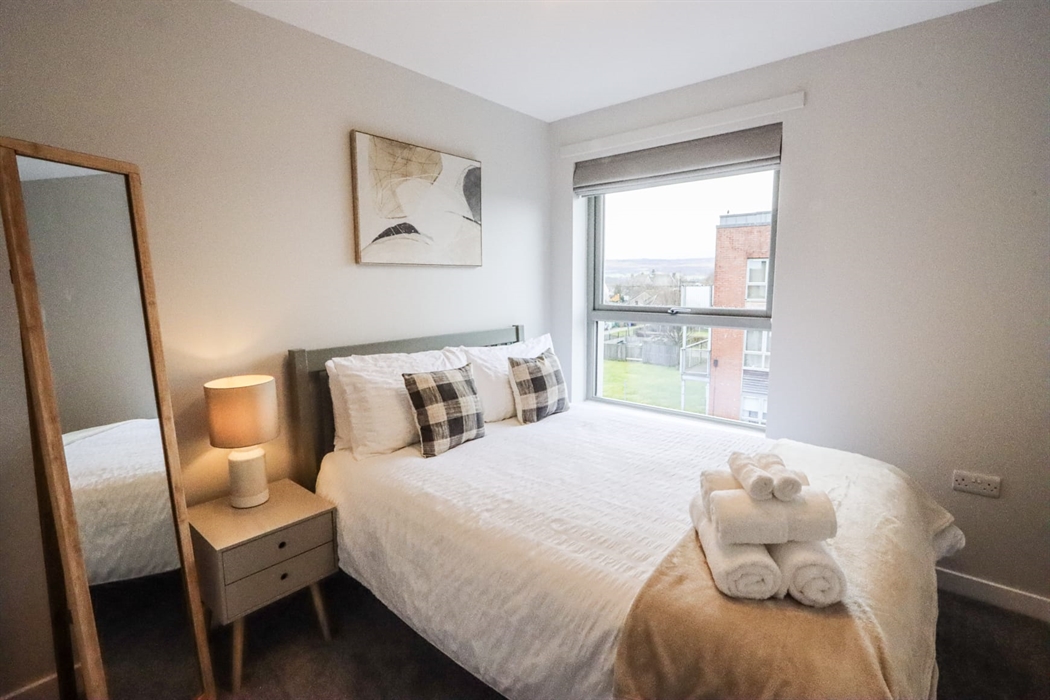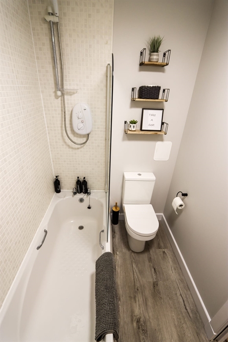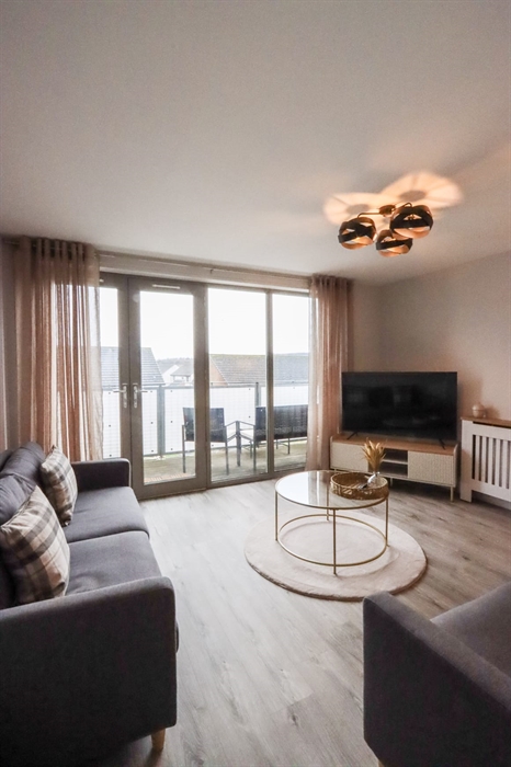 Perfectly located on the edge of town, this second floor 2 bed apartment is just 20 minutes walk from the town centre; and 5 minutes drive from the motorway. It comes with a free designated parking space in a private carpark.