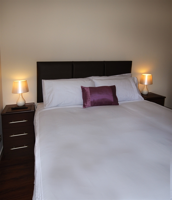 - Master bedroom with a king sized bed and an ensuite shower bathroom.