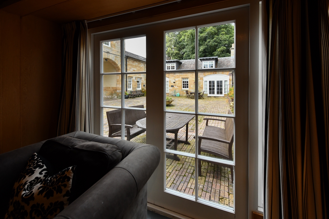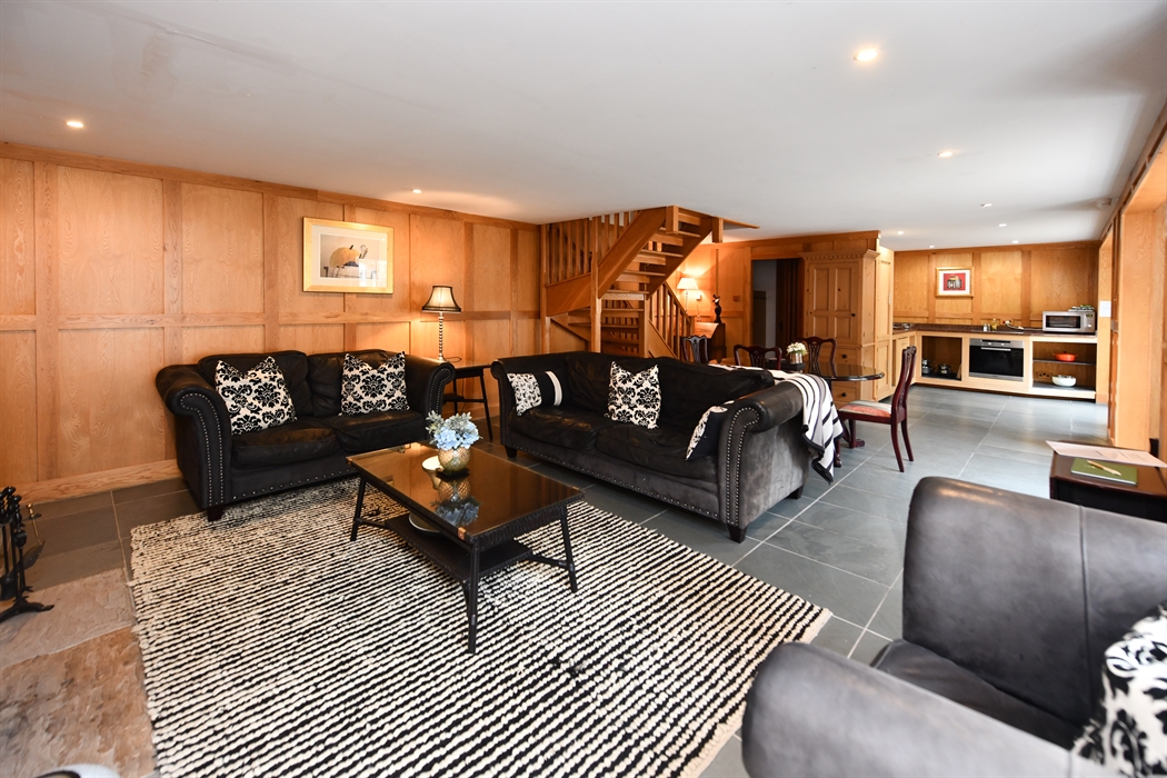 Enter into the open plan living area with large windows looking out into the shared courtyard. A fully fitted kitchen, dining area, spacious living area and WC can be found on the ground floor. Which further benefits from underfloor heating and open log fire sure to keep you warm no matter the weather outside.