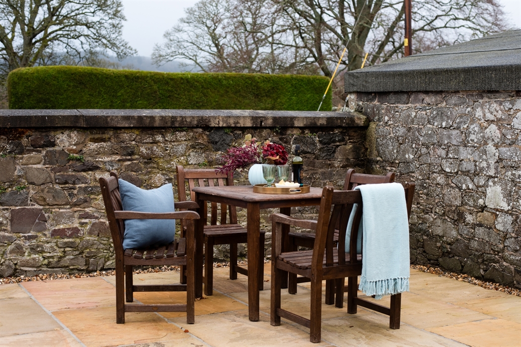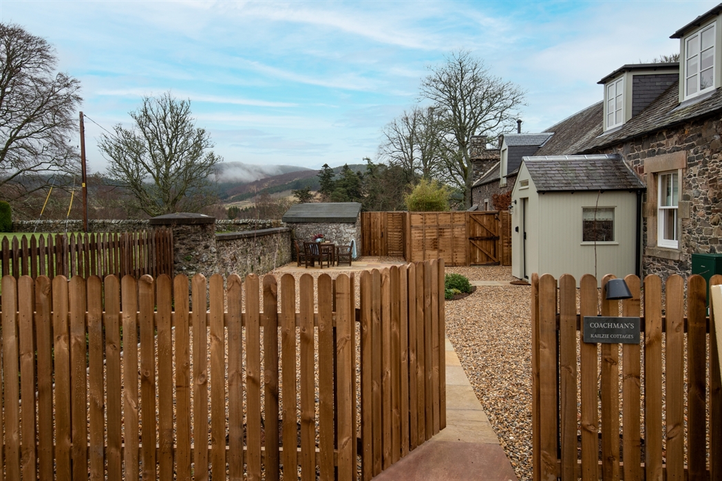 A gate off the enclosed front courtyard leads directly into the Kailzie café courtyard which is ideal for those who wish to take advantage of breakfasts and lunches (please check seasonal opening times outwith Easter – end September). This has outdoor tables and seating, as well as a small shop. It is important to note this area is open to visitors to Kailzie Gardens between 10am and 5pm, but once the gardens close for the day, guests to Kailzie cottages can enjoy private use of the café courtyard, wider grounds and gardens.