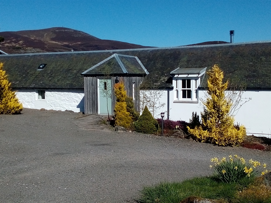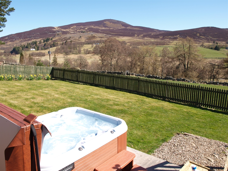 Perched on a hillside in Perthshire, this holiday cottage offers spectacular views from every room and the garden, stretching across Glenshee to Mount Blair. Large patio doors open from the spacious living room onto a raised deck, leading down to a lawned garden with a hot tub. On colder days, relax by the log-burning stove with complimentary logs, while watching red squirrels, pine martens, stoats, roe deer, and a variety of birds in the garden.