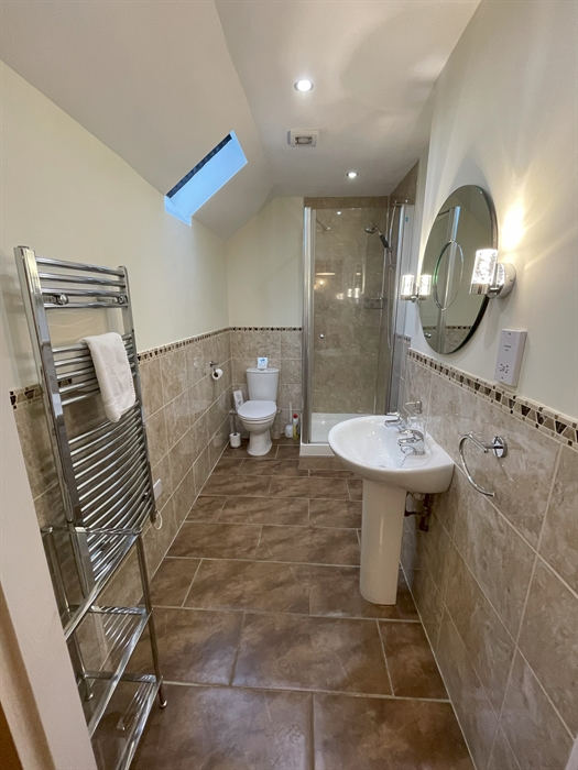 The cottage sleeps four and features a spacious king-size master bedroom with an en-suite shower room, a twin bedroom, and a main bathroom with both a bath and shower. Towels and bedding are provided, including extra towels for the hot tub and bathrobes for adults. The well-equipped open-plan kitchen and dining area includes a dishwasher, washing machine, double oven, hob, microwave, and other essential items to make self-catering a breeze.