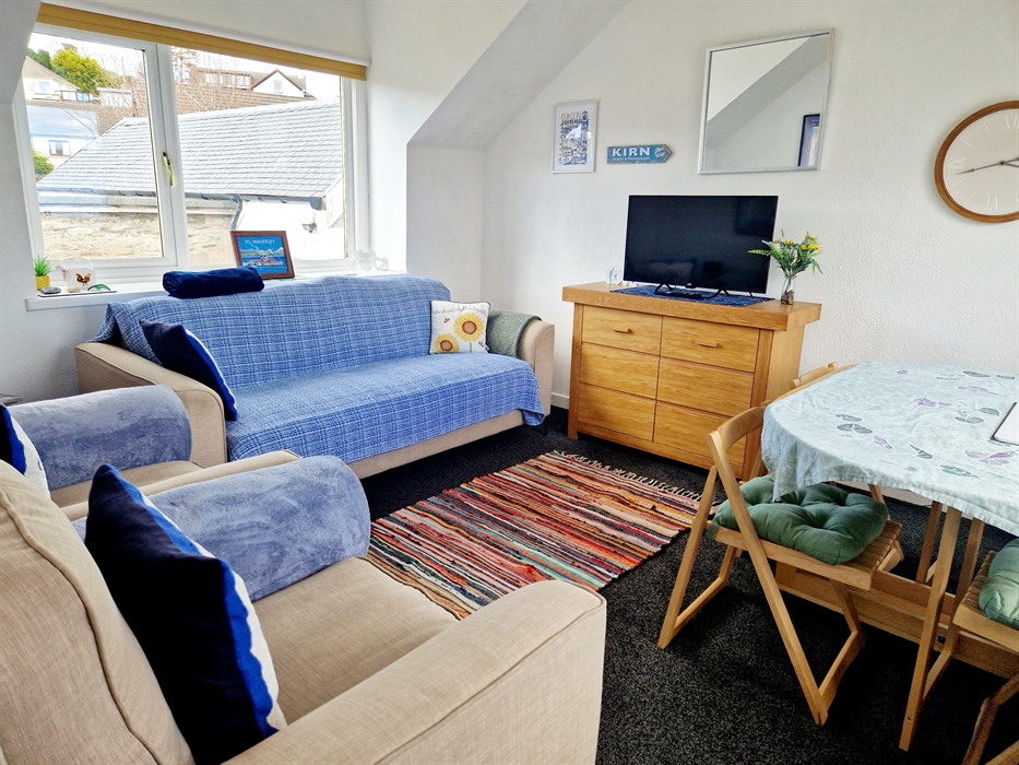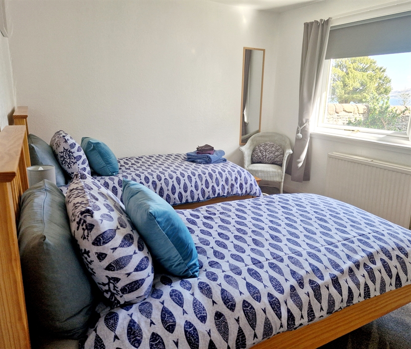 Coorie Braw Cottage is a self contained holiday home which sleeps up to 5. Our welcoming cottage has a ground floor kitchen and family bathroom with bath/shower. There are two comfortable bedrooms on the ground floor, one double and one twin. On the first floor there is a snug double bedroom and a cosy lounge/diner for guests to enjoy the water views and relax together playing cards, board games, watching television and making the most of being together.The cottage is set on the grounds of Coorie Braw Holiday Lettings in the peaceful neighbourhood of Kirn, Dunoon. Sharing the grounds are a larger holiday home, Firthview House and the owner's home, Coorie Braw House. Our homey cottage is family and pet friendly and is a great place to spend quality time together, celebrate special birthdays and explore the beautiful Cowal Peninsula.