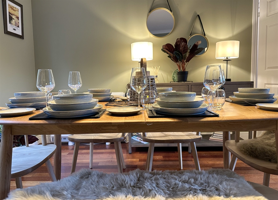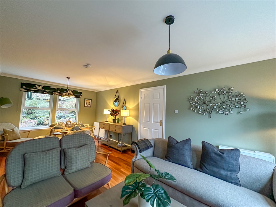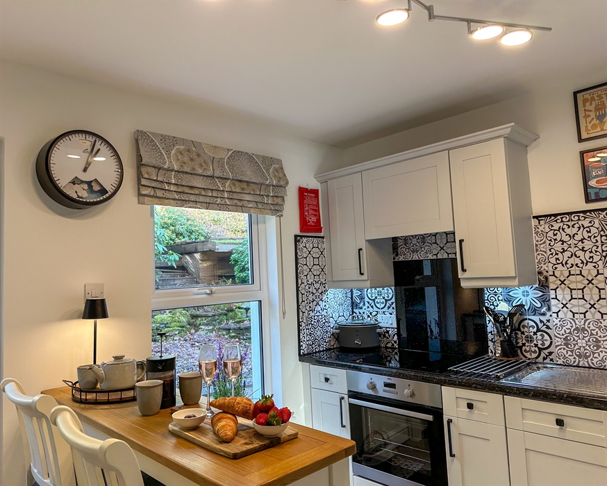 Modern Amenities: Enjoy all the modern comforts, including a well-equipped kitchen with top-quality appliances such as an AEG electric induction hob, AEG electric oven, microwave, and dishwasher. The dining area, which seats up to six, is ideal for family meals and gatherings.