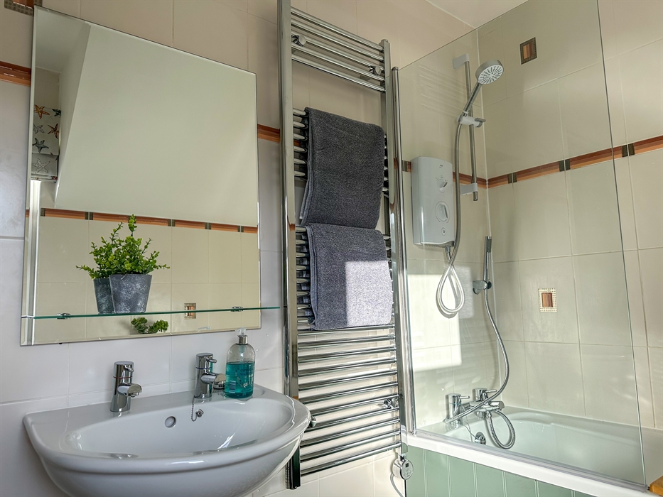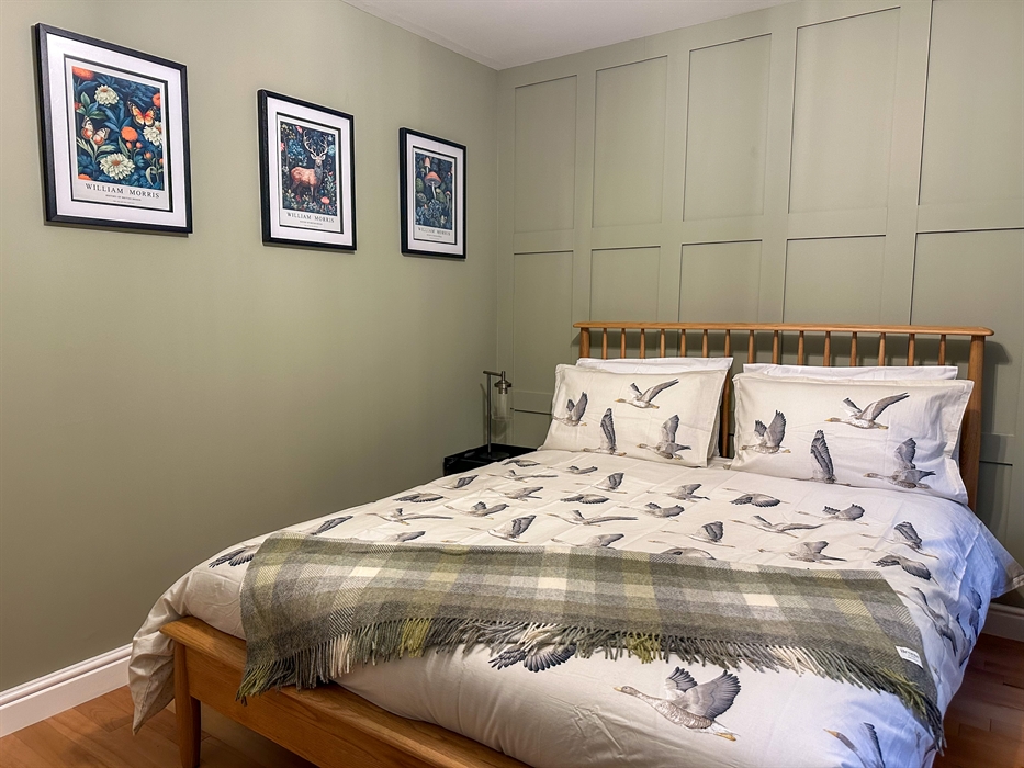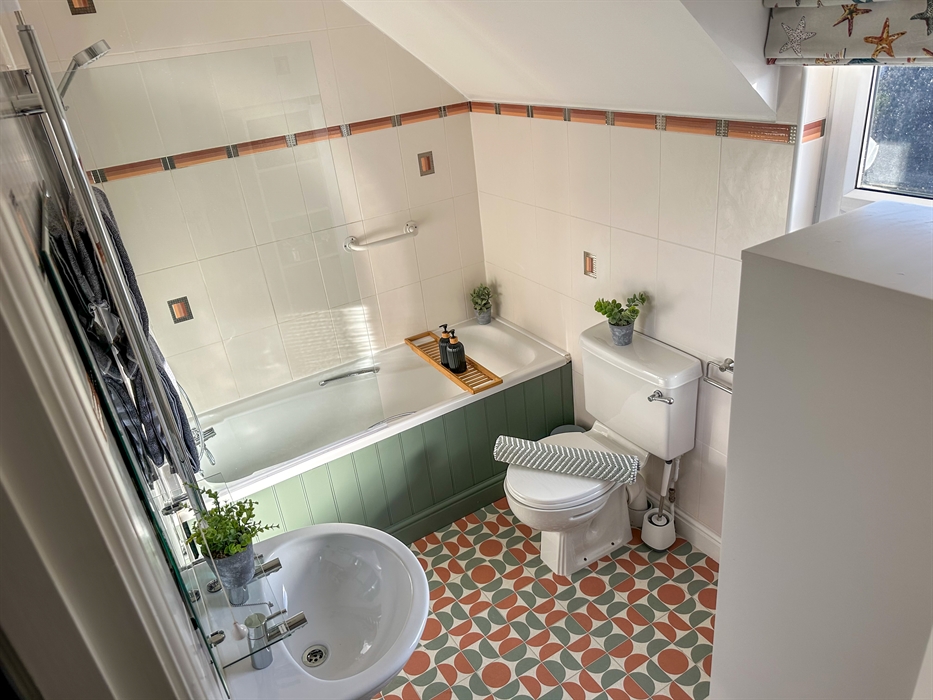 Comfortable Bedrooms: The first floor boasts three well-appointed bedrooms – a king bedroom with garden views, a double bedroom with canal views, and a twin bedroom. All rooms are furnished with quality linens, stylish decor, and ample storage space. The adjacent family bathroom features a bath, shower (over the bath), hand basin, and toilet. There is a second toilet and basin downstairs.