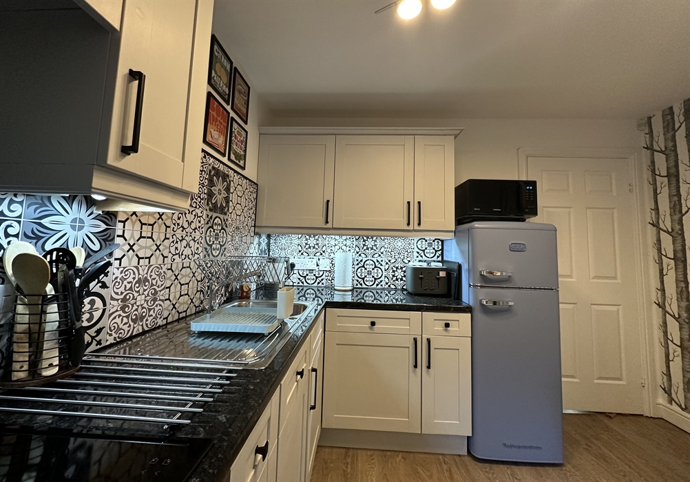 Safety Features: Smoke alarm, fire extinguisher, fire blanket.