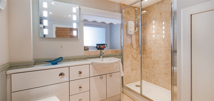- Downstairs bathroom with a large walk-in shower and wc