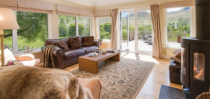 - A Sun room of generous proportions (6m x 6m) with fantastic views down the Glen and south to the River Lyon, benefiting from a wood burning stove.