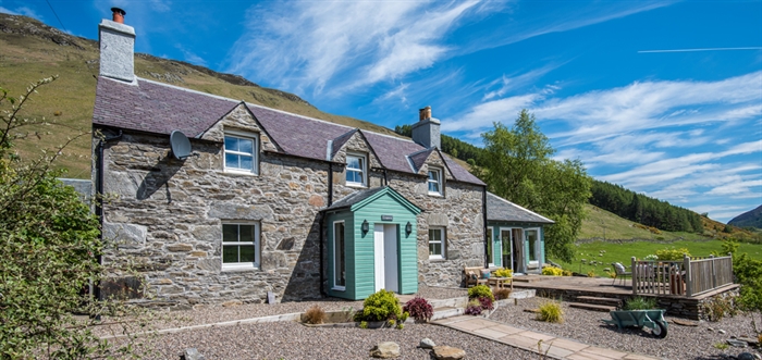 Originally a simple 3 bedroom farm cottage, it has recently undergone a significant extension and refurbishment and is now luxuriously appointed with generously sized rooms, log burning stoves. French doors opening to a patio with elevated views to river Lyon.