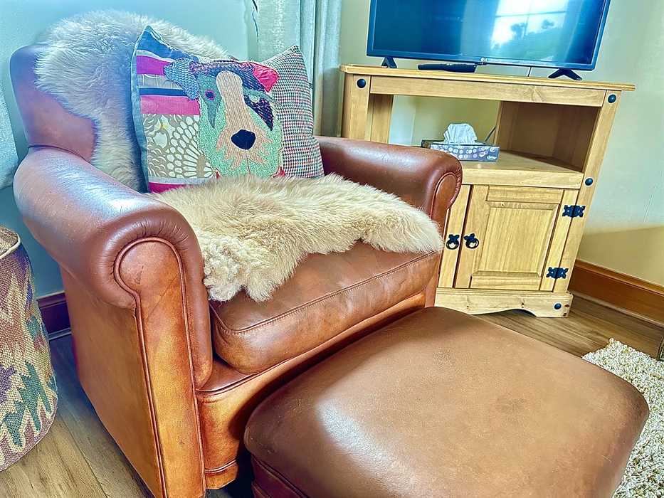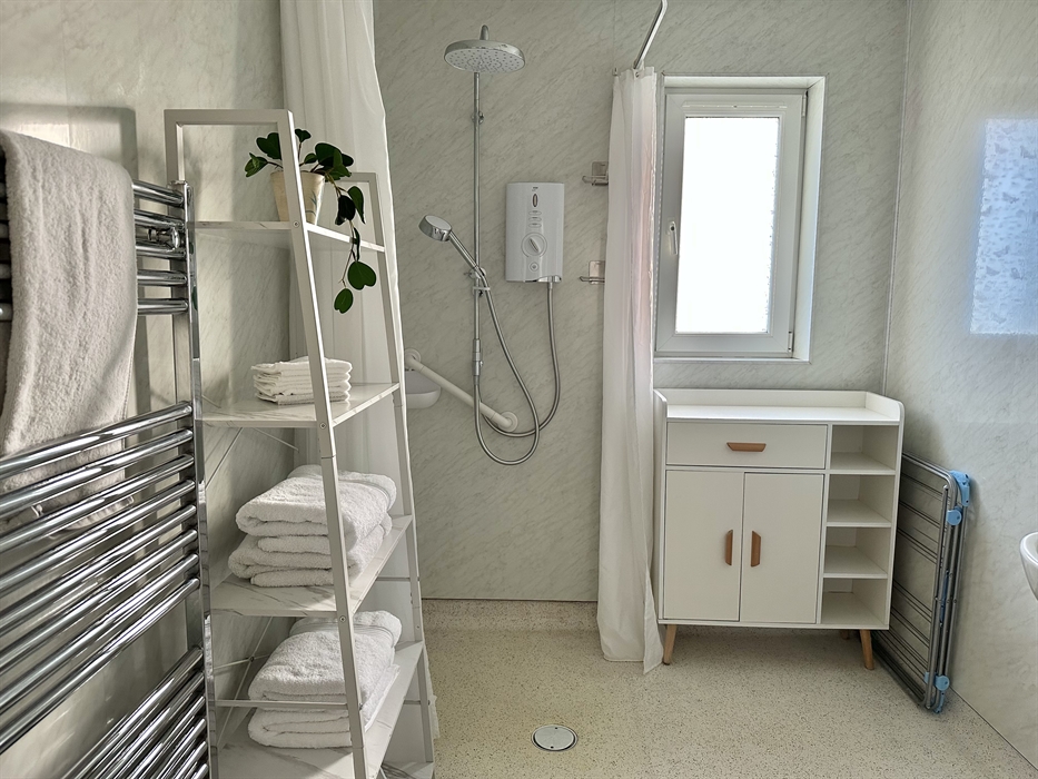 The cottage itself features 2 living rooms (both with smart TVs, one with a wood burner and cosy 'cuddle chairs', the other with full sized sofas); a large dining kitchen with doors out onto the patio, and separate utility room with washing machine, dryer, dishwasher, fridge and freezer. On ground floor level, there is a wet room with level access shower (beside the back door, so ideal for rinsing off after you've been in the water). Upstairs there are 2 double bedrooms with plenty of storage, and a bathroom (with bath).