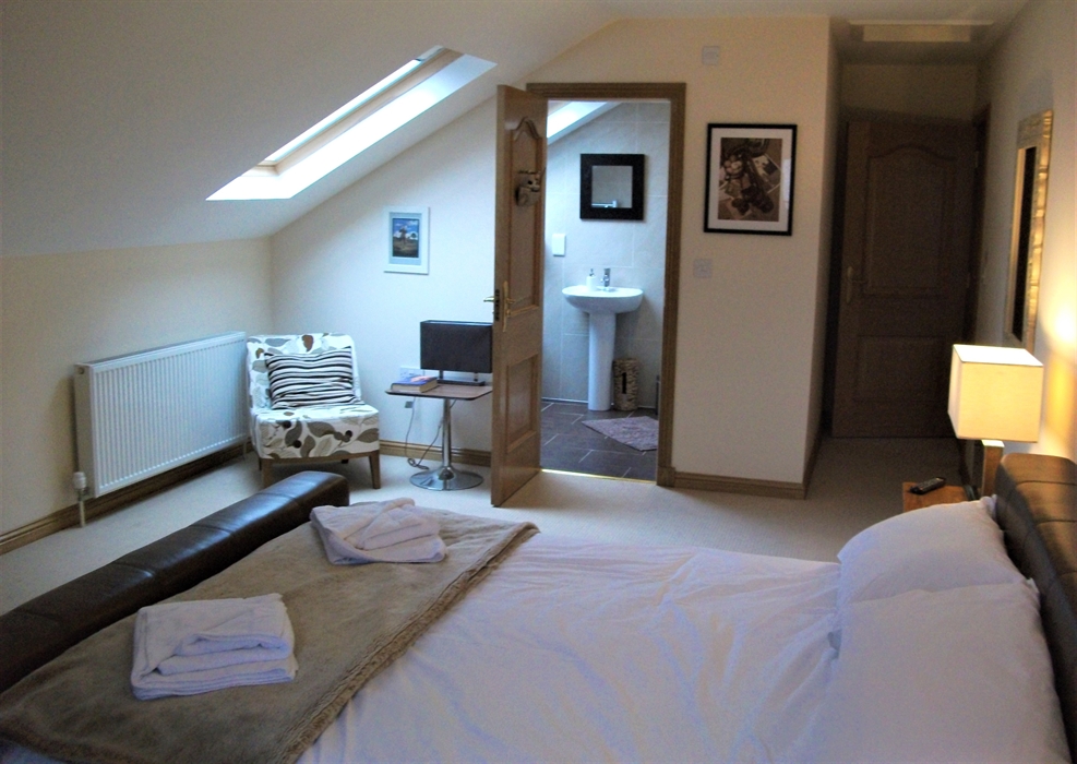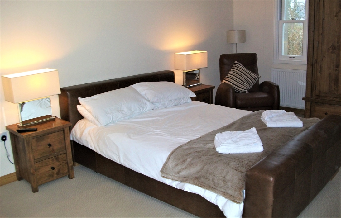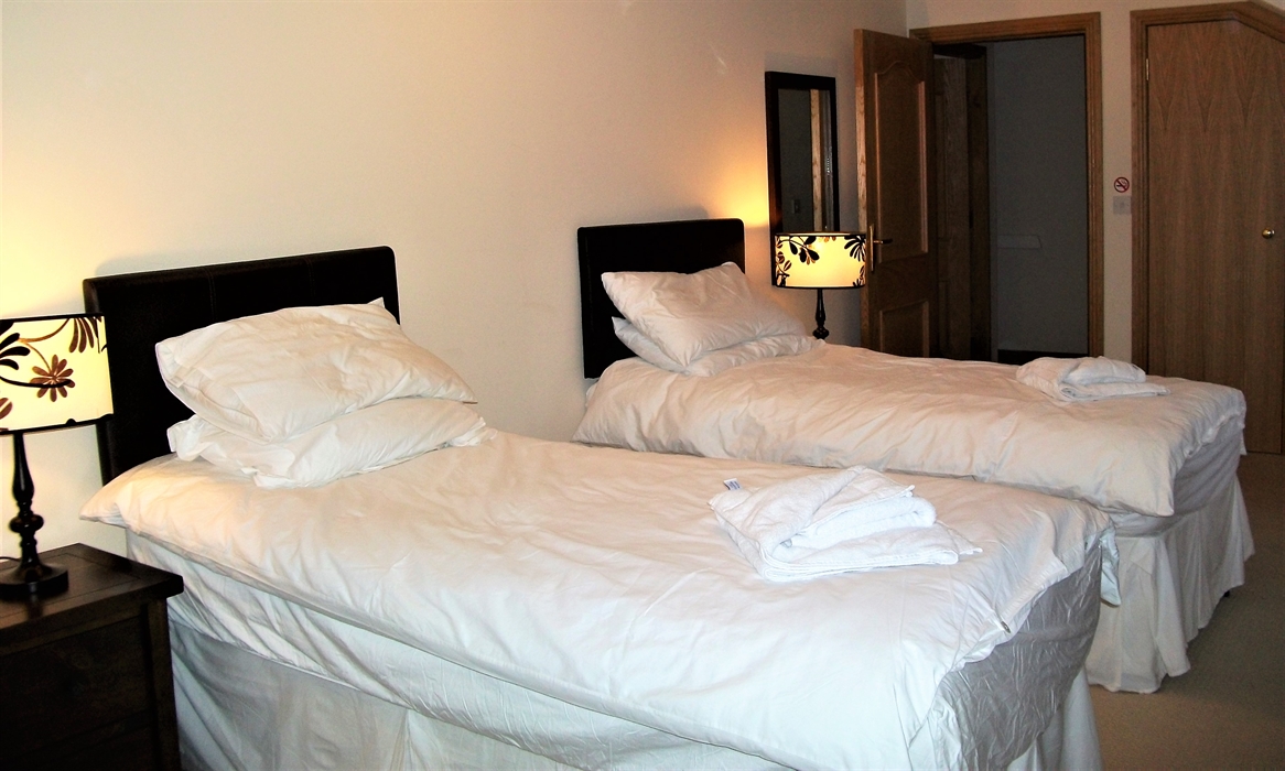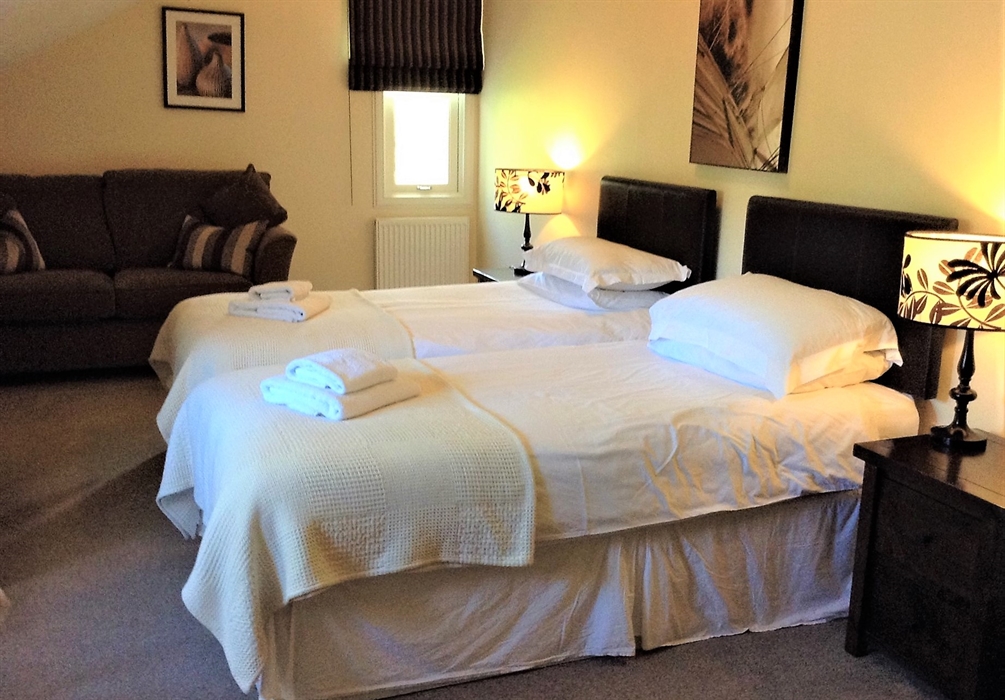 The large twin bedded room has built in wardrobes, chest of drawers, and multi channel TV/DVD player and the views over the garden are delightful.