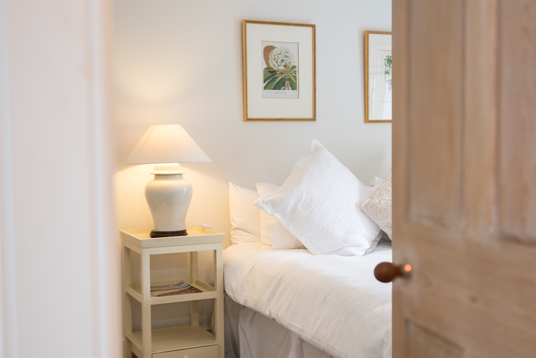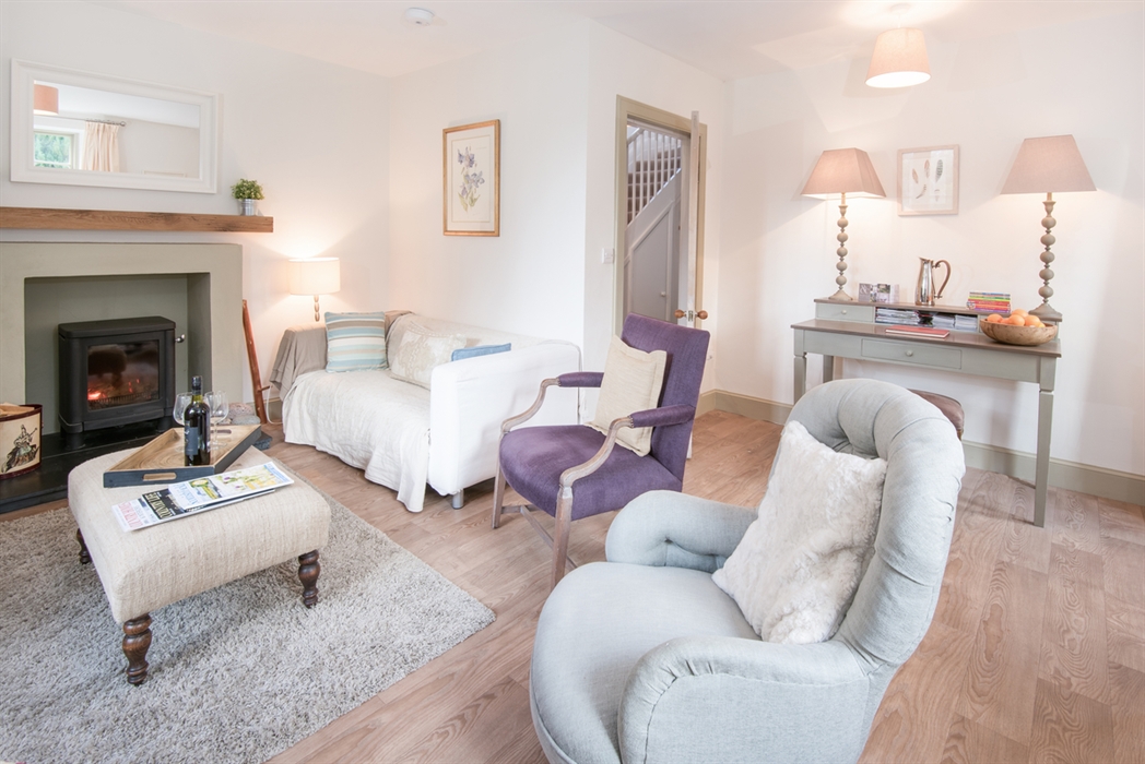 The well-presented accommodation is light and bright and furnished in a contemporary cottage style. Downstairs there’s a well-equipped eat-in kitchen, shower room and charming sitting room with a log burner for the cooler months and French doors to the garden for summer living. Upstairs are two good-sized bedrooms – a double and twin – and a smaller single room along with a pretty family bathroom.