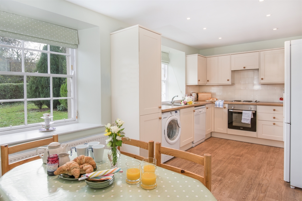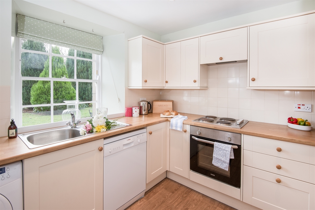 Fully equipped, eat in kitchen with electric oven with 4 ring hob, dishwasher, large fridge / freezer, washing machine. Good quality crockery, glasses and cookware. Dining table and chairs for 6.