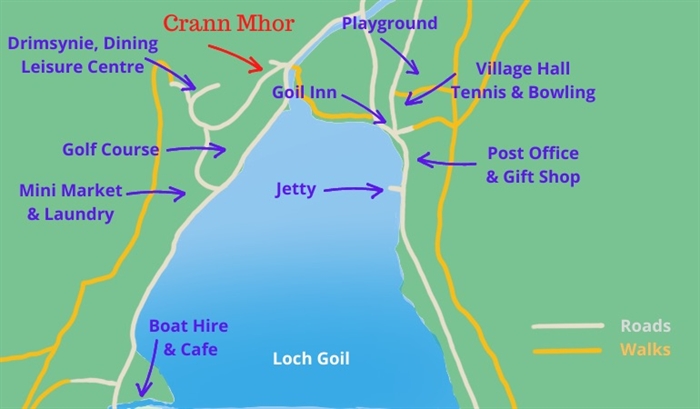 Crann Mhor is the first house by the golf course as you arrive on Drimsynie Driveway. It is only a few minutes walk to the leisure facilities, dining and entertainment, offered at the popular Drimsynie Holiday Village, as well as being close to the foot bridge over the River Goil and a few minutes walk along the shoreline to Lochgoilhead village.