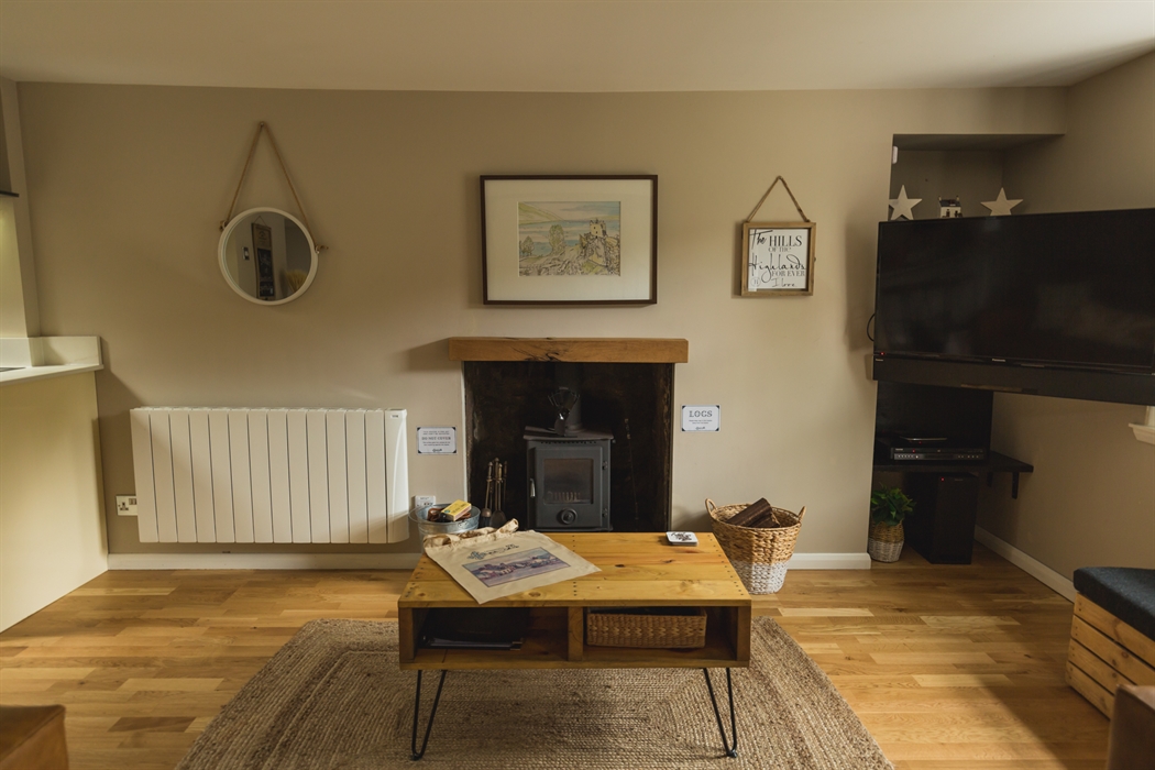 Crossroads Cottage has an open plan layout with lounge and kitchen diner on the ground floor. Here you'll find a log burning stove, a flat screen TV and CD player. Wi-Fi is available free of charge. The kitchen has a breakfast bar, ceramic hob, microwave with oven and grill, dishwasher and washer/dryer, fridge/freezer and ironing facilities. The shower room is also on the ground floor. Upstairs you will find the bedroom, boasting a kingsize bed and TV with DVD player. Here there is a wonderful view of the neighbouring decorative miniature railway! One well behaved pet is welcome. There is a dedicated parking space opposite the cottage. Included in your stay: bed linen and towels, utilities, wi-fi, one basket of firewood.