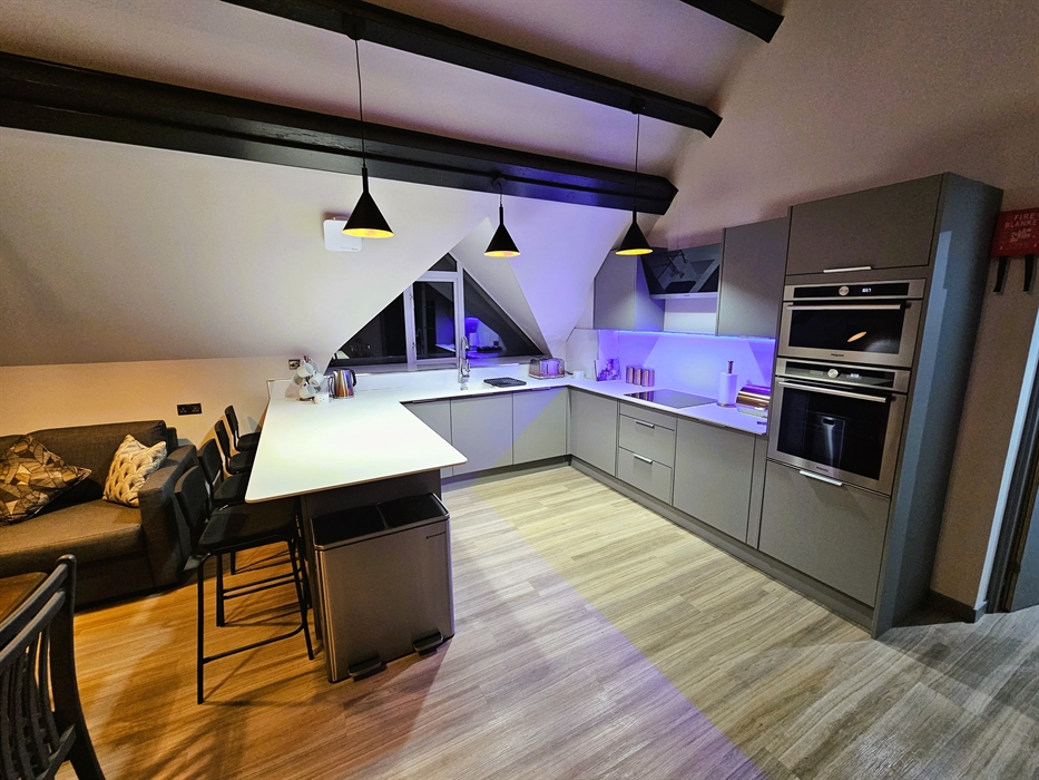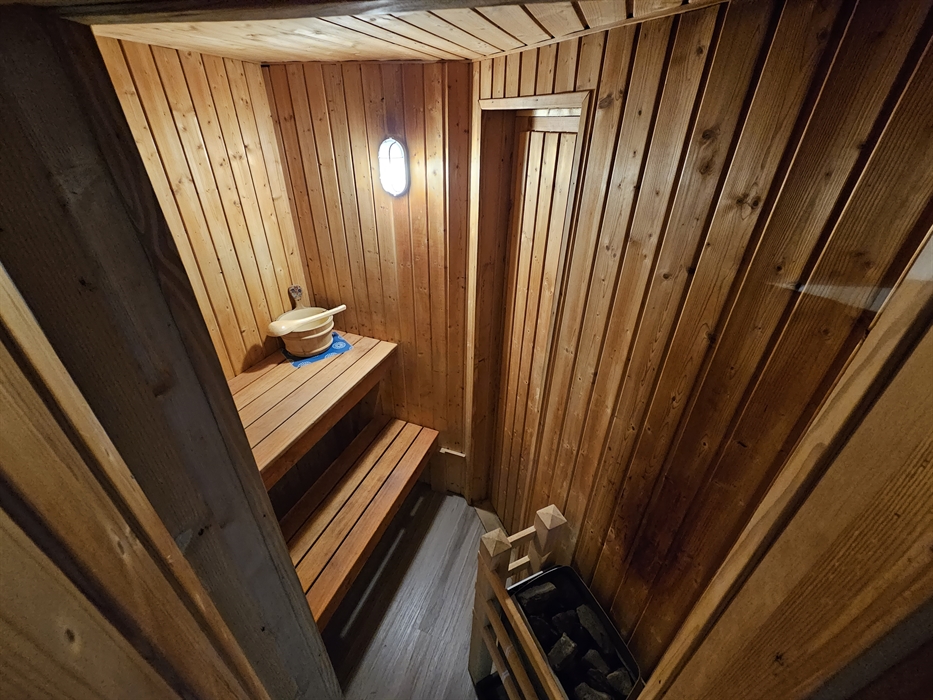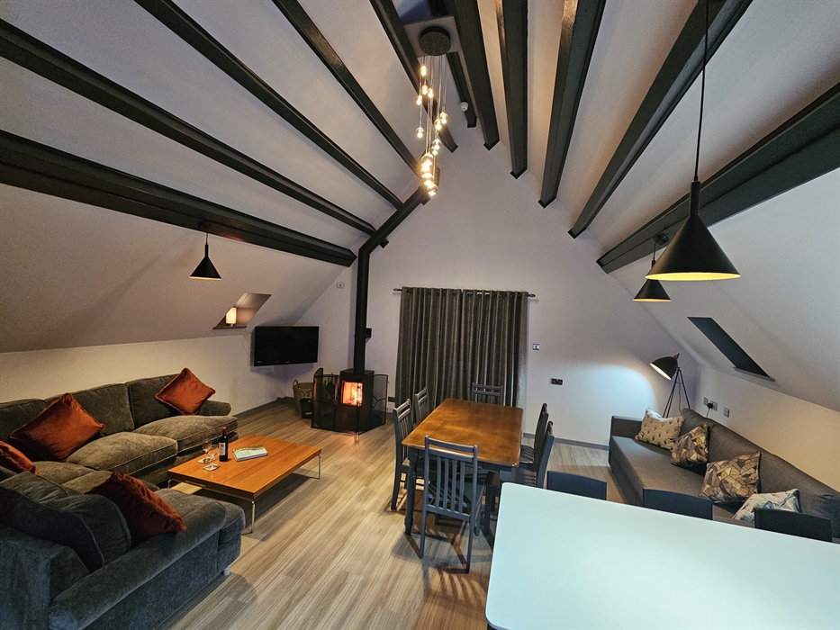 A secluded two bedroom suite perched on the top floor complete with a warm fireplace & private sauna.