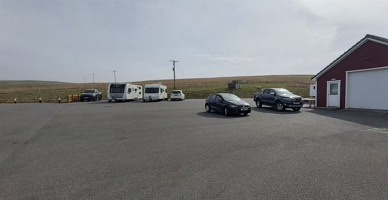 A fifteen minute drive south from Lerwick, through picturesque countryside, will see you sitting comfortably in our fully serviced, four star touring park. Our heated facility building provides showers, toilets, laundry facilities, WI FI, and a spacious kitchen/dining area for cooking meals. Ideally suited for relaxing with friends and enjoying the splendid view over the peaceful marina and across the Voe to the village and hills beyond.