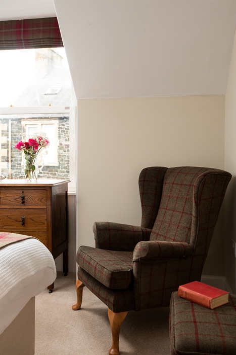 The property is semi-detached and sits in a residential street in the town of Peebles. The side lawned garden and small courtyard to the rear is private with limited over-looking.
