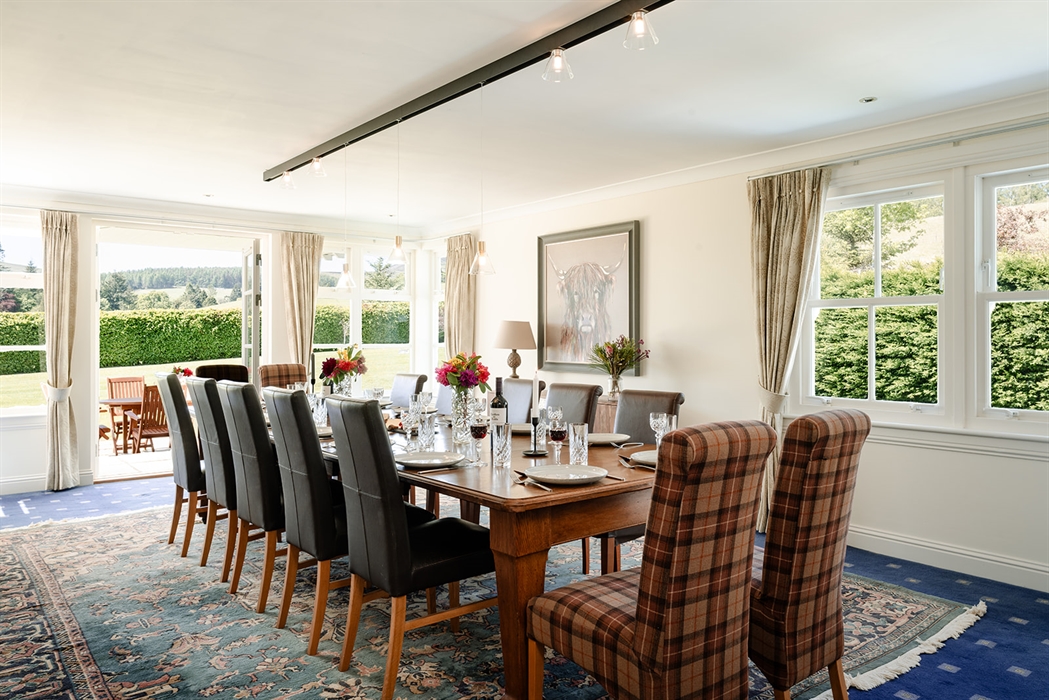Surrounded by the craggy, heather-topped hills of Highland Perthshire, Deanshaugh makes an ideal base for exploring, unwinding and spending quality time with family and friends. This spacious and thoughtfully designed six-bedroom holiday home offers a quiet countryside location, yet is under 20 minutes from the town of Aberfeldy and less than half that from equally popular Dunkeld.