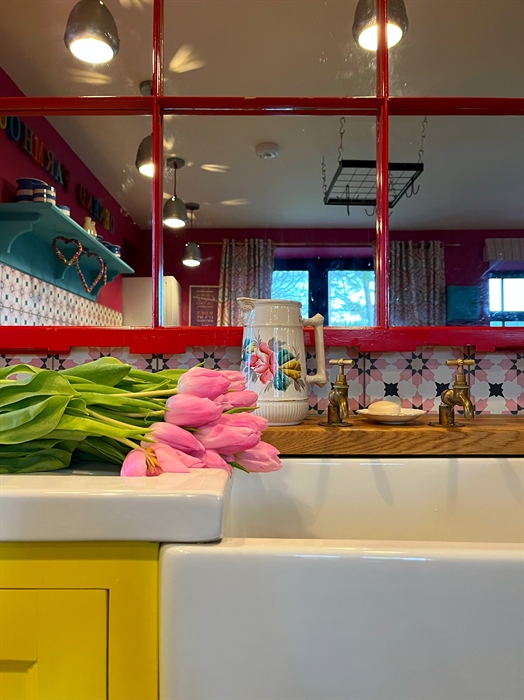 Denend Farmhouse is available for short breaks and discounts are available for couples with flexibility on arrival days, do just ask Jane. This fabulous farmhouse is filled with vintage and colourful delights on the inside and a wood fired hot tub, wood fired pizza oven on the deck outside.
