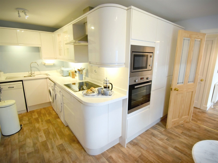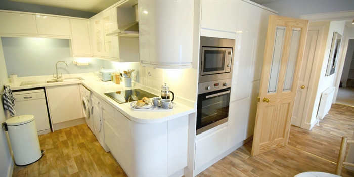 The kitchen boasts all the most discerning gourmand could demand, with a new induction hob, oven, microwave, fridge, freezer, and Nespresso machine – and to help tidy up there is Bosch compact dish washer, washing machine and tumble drier