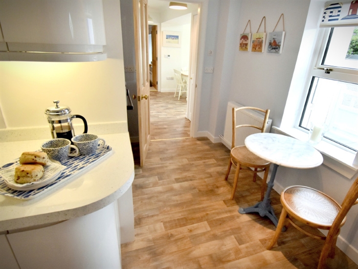 Outside – to one side you will find a small sun trap with stylish metal garden furniture and table to enjoy the peace, your perfetto espresso and fresh croissant from the village bakery and to the other a wee rose garden… Opposite private parking and a large shed to store your mountain bikes, body boards or skis