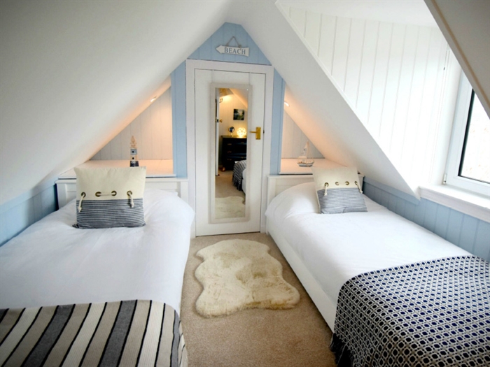 The bedrooms are bijou and cosy, designed for a snug good night’s rest…downstairs there is a small double…upstairs in ‘Wee Dram 1’ a comfy double and in ‘Wee Dram 2’ two singles for your little ones