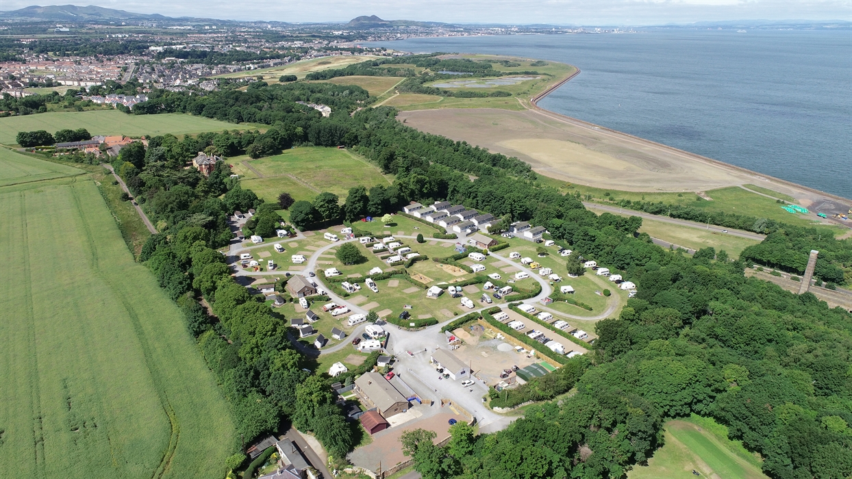 Drummohr is located just 2 miles from Musselburgh and 10 miles from Edinburgh. The campsite entrance is a short walk to the shores of the Firth of Forth and the John Muir Way. Bus stop 5 minutes’ walk and train station 20 minutes or there is a large park and ride.