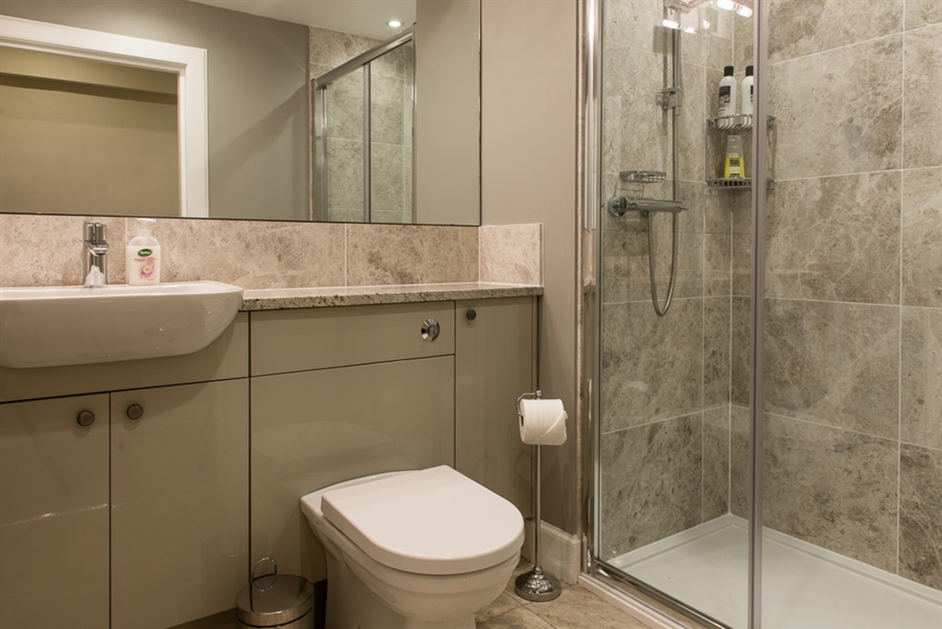 On the lower floor is the master bedroom with a King-size bed, a fireplace, and an ensuite bathroom equipped with a heated towel rail and a shower over the bath. Along from the utility room, which contains the washing machine and tumble dryer, are a shower room and a second twin room. There is also a garden room which leads on to the paved garden enclosure, where occupants can relax and enjoy the fresh air.
