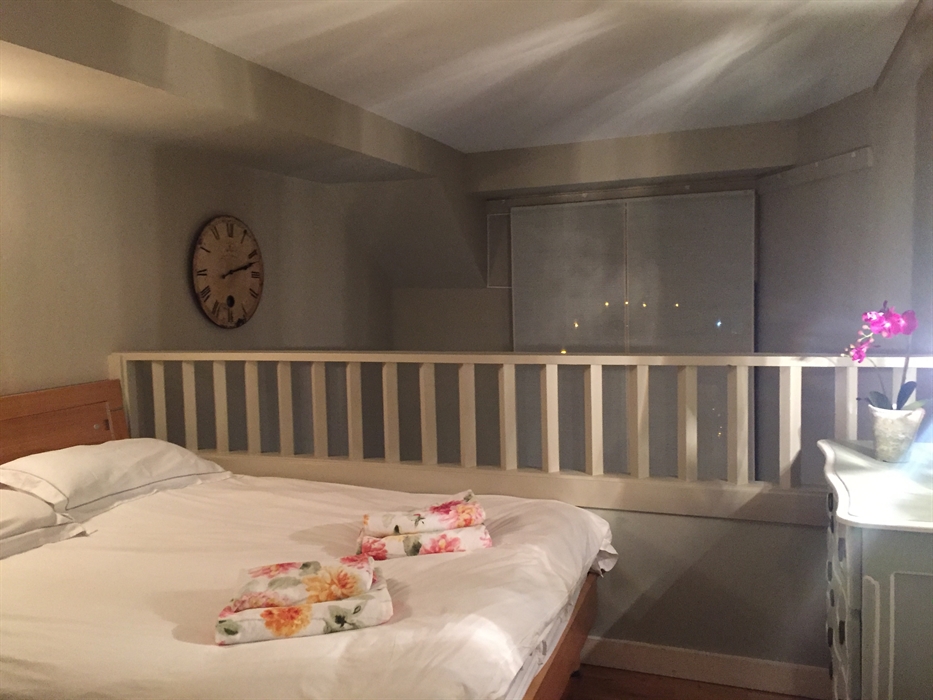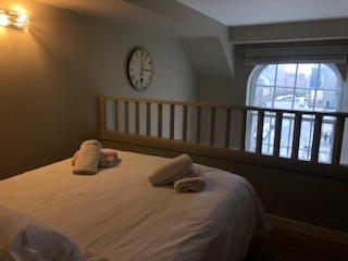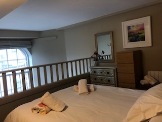 On the lower floor there is a bedroom with twin beds (2 singles) , and a bathroom with an overhead electric shower.On the mezzanine level there is a king sizebed above the kitchen/sitting room, through which a shower room and single room are accessed. The single bed can be folded out to singles.This is small and perfect for children only one adult, although two is possible. Smart TV, , a washing machine and dish washer and iron and ironing board. Beds are prepared for your arrival and towels are provided. Any length of stay is welcome.Arrival day is any day.