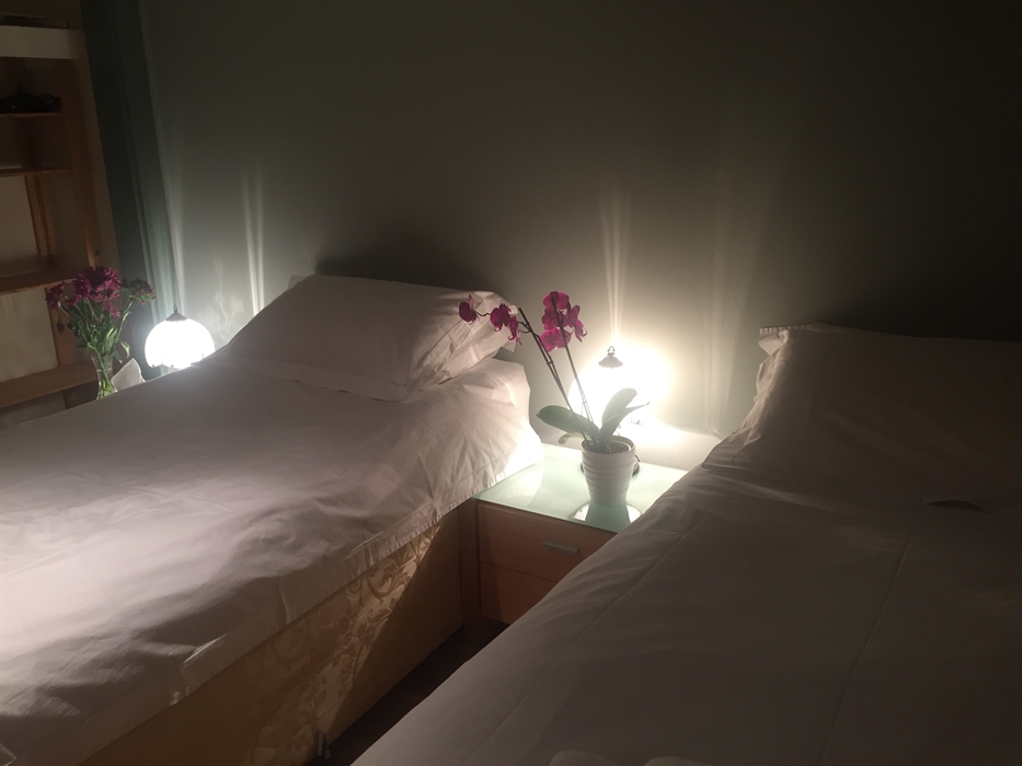 Twin room accessed through double room and a shower room.