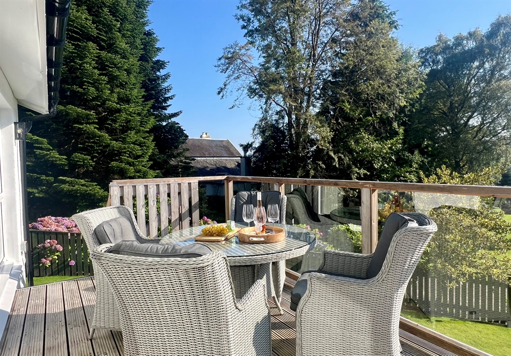 From the living space step outside on to the balcony terrace, complete with outdoor furniture, and views to admire. Ideal for alfresco dining.