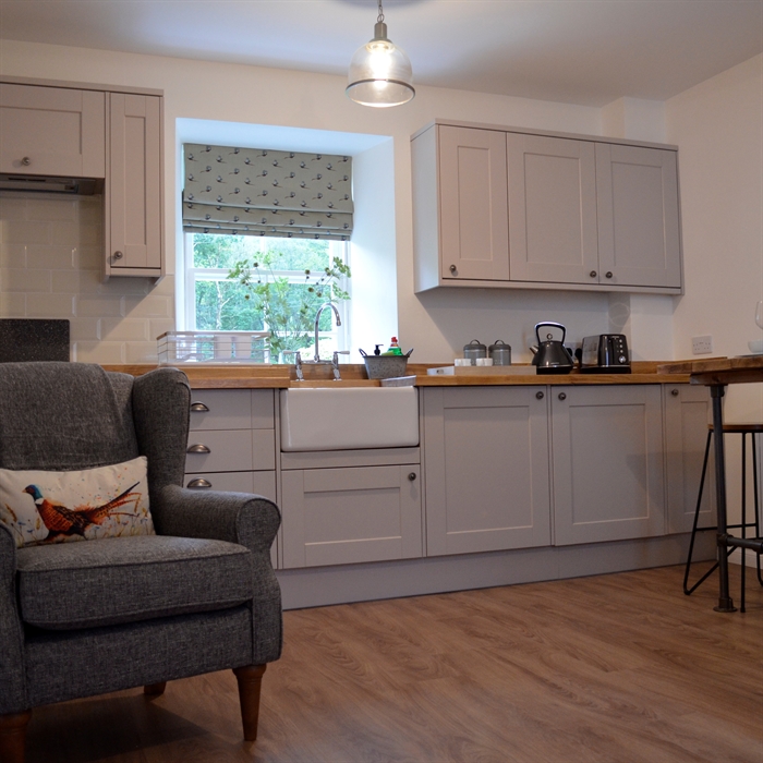 The luxury self-catering accommodation comfortably sleeps 2 and comprises of a kitchen/living area downstairs and en-suite bedroom upstairs with a double bed.