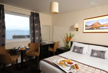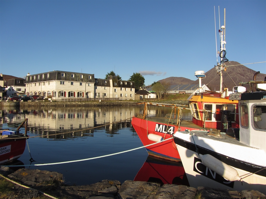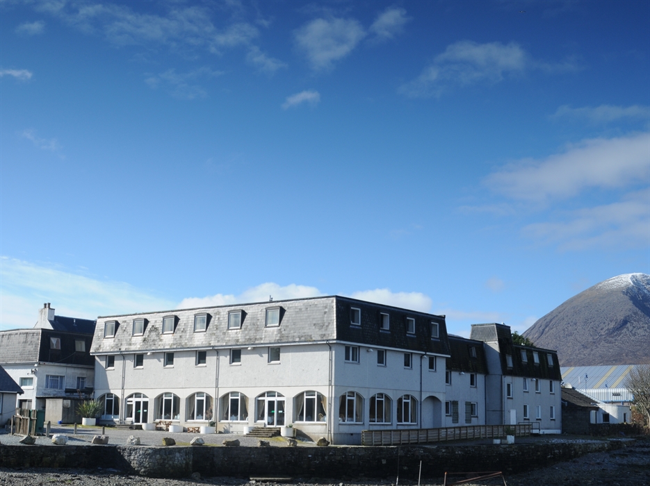 The Dunollie Hotel sits overlooking the old harbour wall in Broadford with magnificent views across the sea to Loch Kishorn and the Applecross hills.