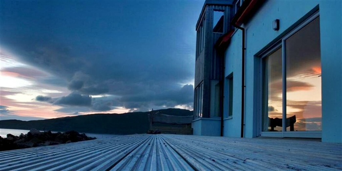 Only accessible by Britain's highest mountain pass, the Bealach na Ba, and its own private road, this warm, skylit, log-fire sanctuary has vast common spaces, with bespoke, handcrafted fittings and sculptures.