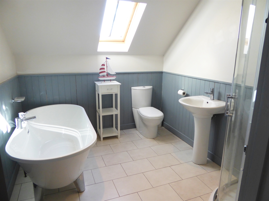 A central staircase leads up to the two spacious and light bedrooms, a double and a twin, that share a chic bathroom with both a walk-in shower and a free-standing bath that is perfect for a long soak.