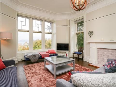This stunning detached cottage boasts glorious sea views and rests on the pretty Isle of Bute and can sleep twelve people in four bedrooms.