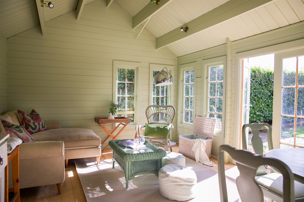 An enclosed lawned garden encircles the cottage, perfect for dogs and children to explore, while garden seating and a charcoal barbecue are sure to be enjoyed on warm summer evenings. A luxurious wood-panelled summerhouse lies at the end of the garden, tucked away beneath mature trees. An idyllic place to toast a cocktail or simply relax with a good book, it benefits from its own heating, coffee machine, and drinks cabinet.