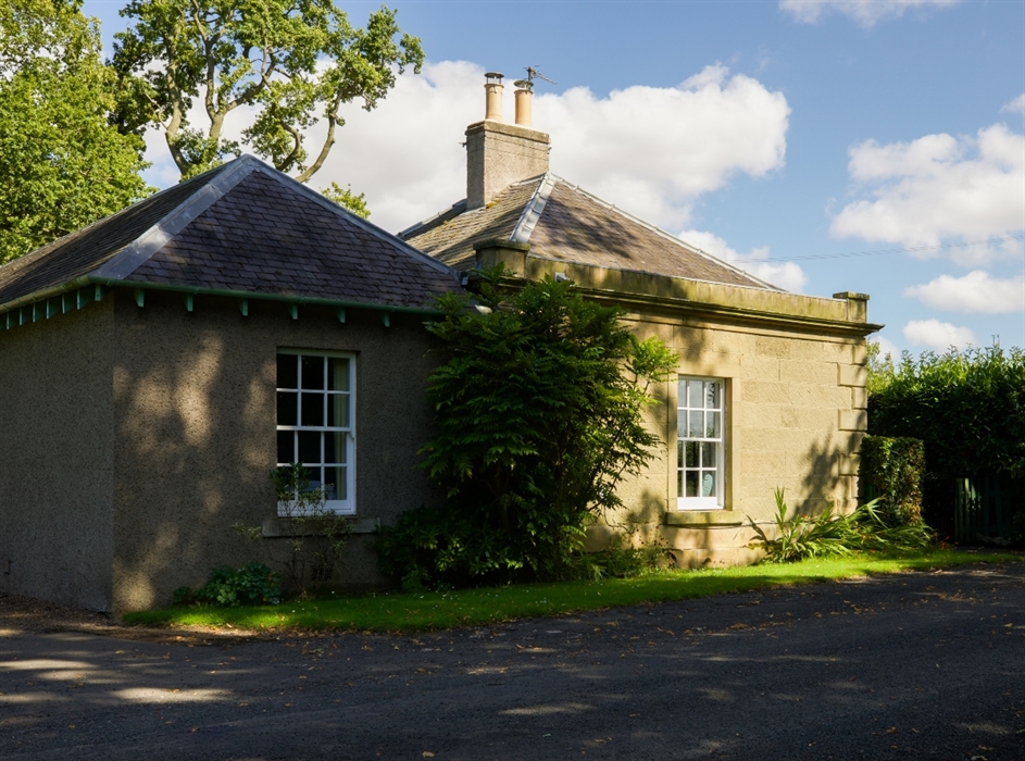 East Lodge is a gate lodge at the east entrance to the Bughtrig Estate, and sits directly off the B6461. It is detached and not overlooked. High hedging along the boundary of the garden offers privacy from the road.