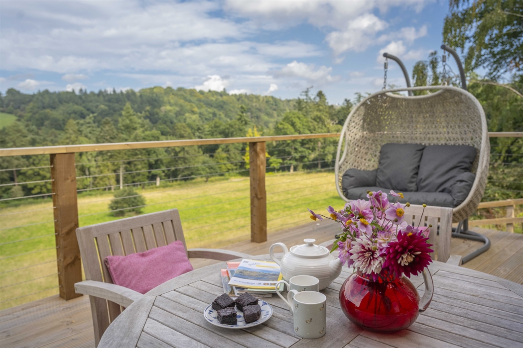 Right at the heart of the inviting open plan living area is a wood-burning stove that keeps everything nice and cosy and provides the perfect place to relax after a day spent exploring. The fully equipped kitchen has everything needed to ensure that cooking is stress free. The circular dining table seats four and the glass sliding doors open up onto the wrap around decking that provides lovely views of the woodlands that surround the lodge as well as the majestic River Tweed that can be seen peeking through the trees.
